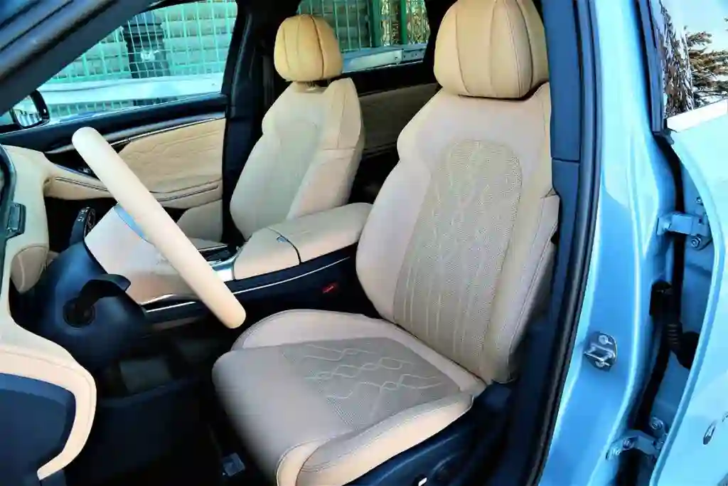 В салоне качественные и хорошо подобранные отделочные материалы: даже имитирующий дерево пластик выглядит солидно. Есть и амбиентная подсветка с целой палитрой цветов. Передние сиденья имеют электрорегулировки в 12 направлениях и снабжены функциями обогрева, вентиляции и массажа. Венчает все это электро-хроматическая панорамная крыша, «закрыть» которую можно с помощью манипуляций на сенсорном экране.