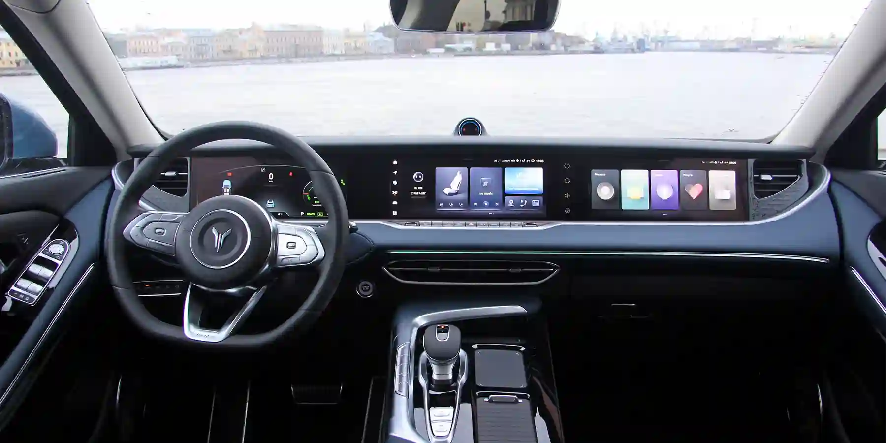 Создатели Voyah Free не поскупились на оснащение. Передние сиденья – не только с обогревом и вентиляцией, но и неплохим массажером. Панорамная крыша – без шторки, с десятью уровнями затемнения, которые выбирает водитель. Такое доводилось видеть только на Porsche Taycan.