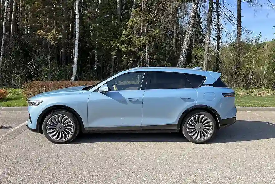 Электрический  Free – это заявленные 488 сил и 750 Нм крутящего момента, 500 км автономности и 4,7 секунды до сотни. Выглядит машина типичным легковым универсалом – это для современных кроссоверов обычное дело. Даже черные элементы непрактичные, окрашенные. Минимальный клиренс едва переваливает за 110 мм. Мизер! Но это в стационарном положении для погрузки-разгрузки. Voyah Free базируется на пневмоподвеске, а она поднимает кузов почти до 210 мм во внедорожном режиме. Добавим сюда полный привод и абсолютно плоское, прикрытое пластиком днище.