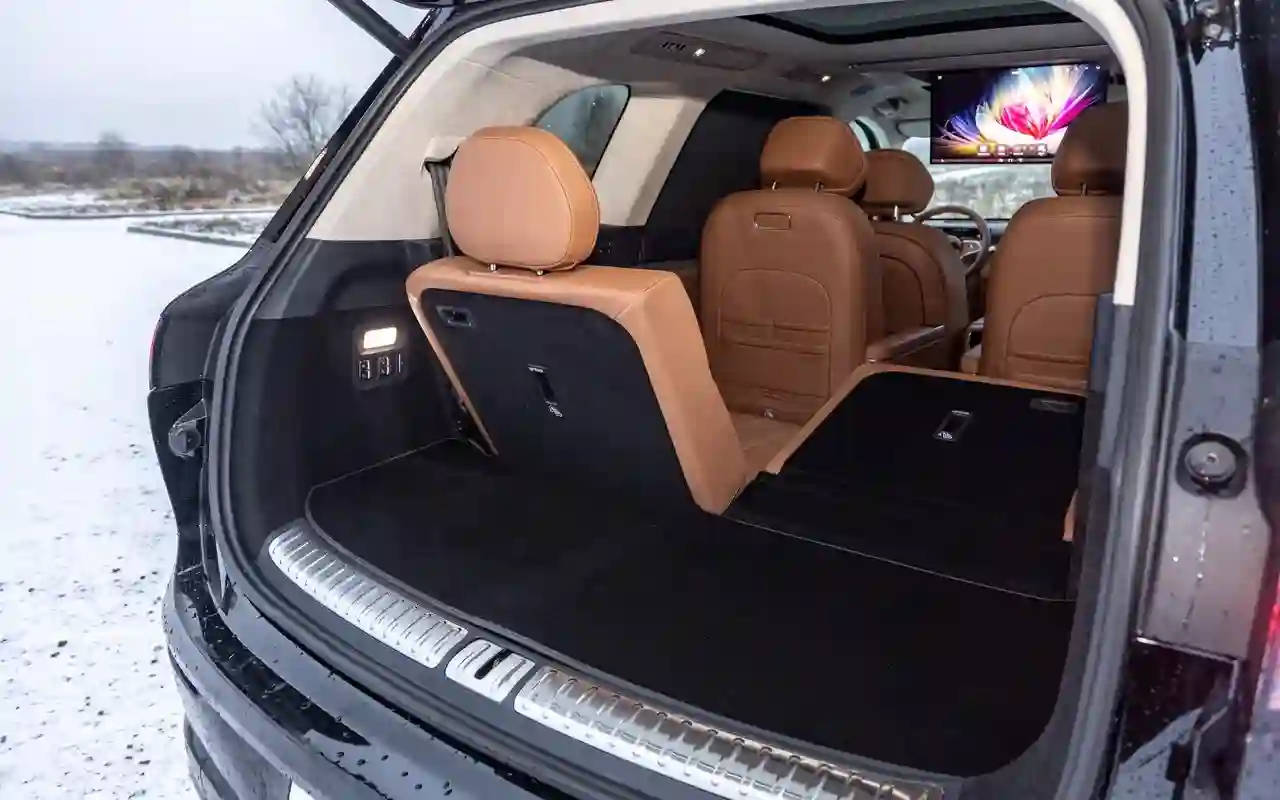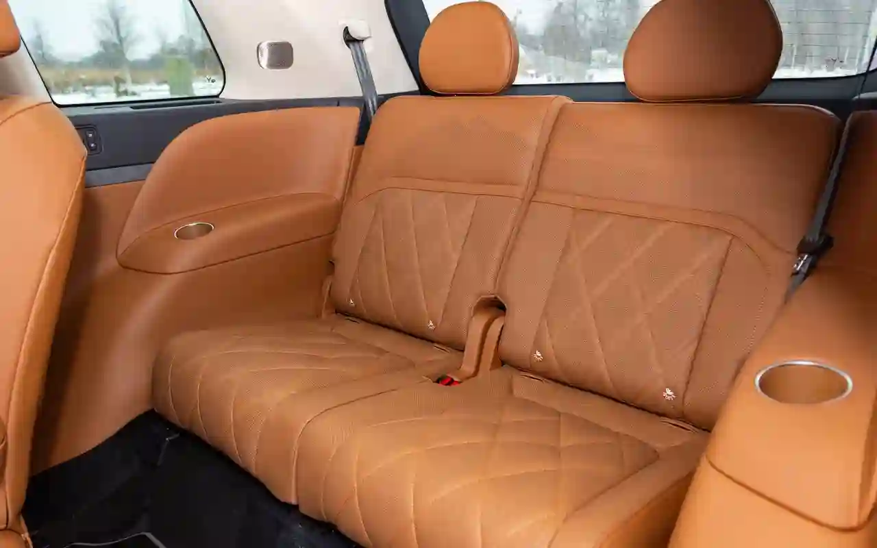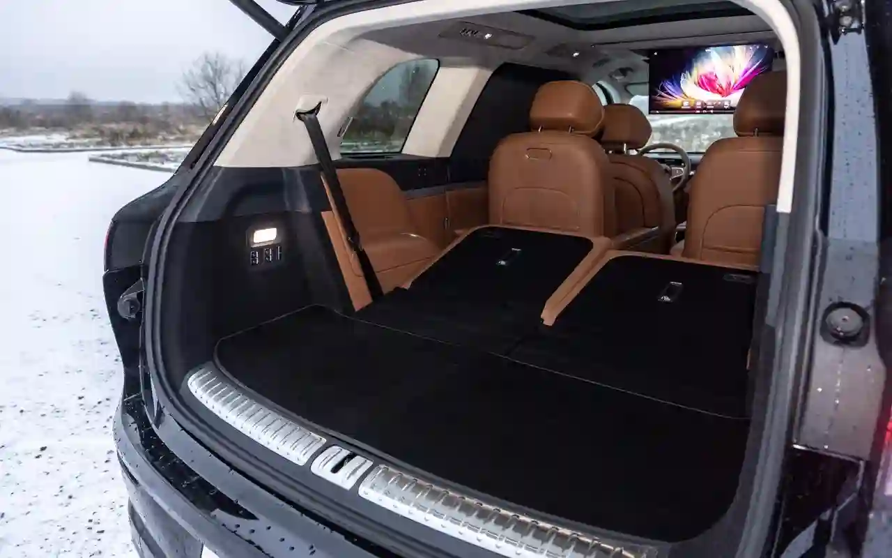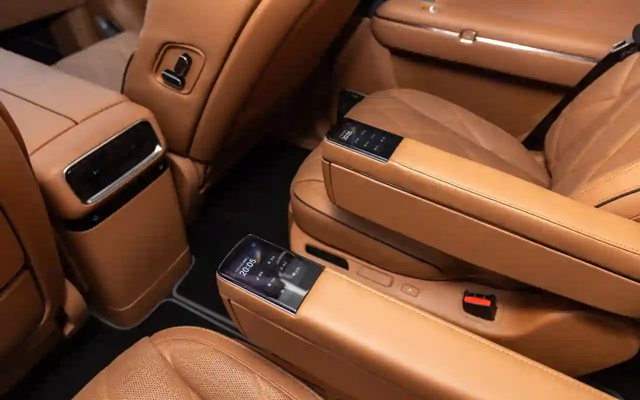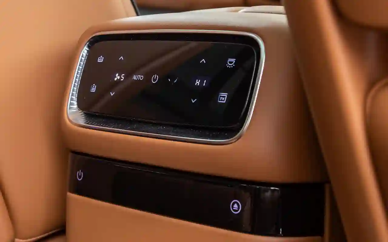 О банальных подогревах с вентиляциями говорить не имеет смысла. У каждого сиденья на втором ряду — отдельный 3,5-дюймовый цифровой пульт со всеми прибамбасами: хоть музыку включай, хоть караоке или видеоигру, либо же раскладывай в кровать, если захотелось вздремнуть. Откидной телевизор диагональю 21,4 дюйма на потолке, громадная панорамная крыша, электрические шторки на боковых окнах и столики в спинках передних кресел — все в VOYAH TAISHAN кричит о том, что пассажир здесь главный и машина только для него.